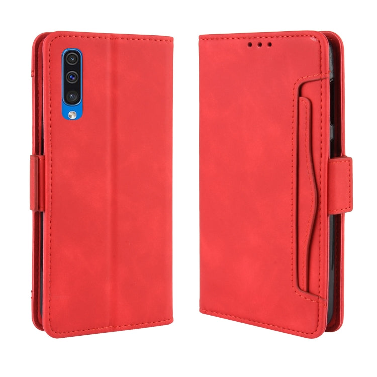 Estuche de Cuero Becerro Skin Feel para Galaxy A50 y A50S Estilo Billetera con Ranura para Tarjeta (Rojo)