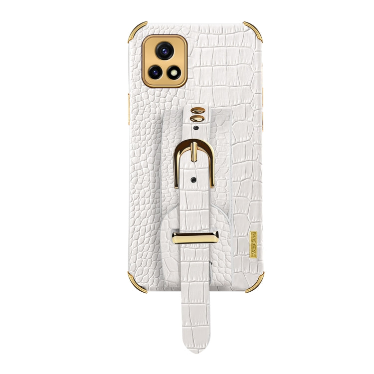 Estuche de Cuero con Patrón de Cocodrilo de TPU Electrochapado con Correa para la Muñeca para Vivo Y52S 5G (Blanco)
