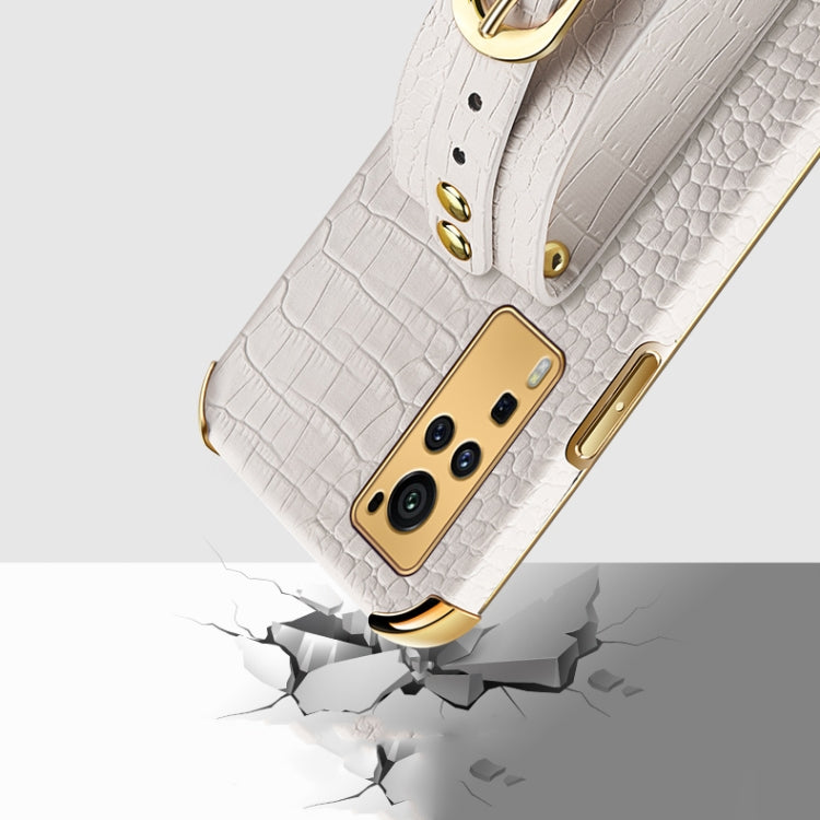 Estuche de Cuero con Patrón de Cocodrilo TPU Galvanizado con Correa de Muñeca para Vivo X60 Pro (Amarillo)