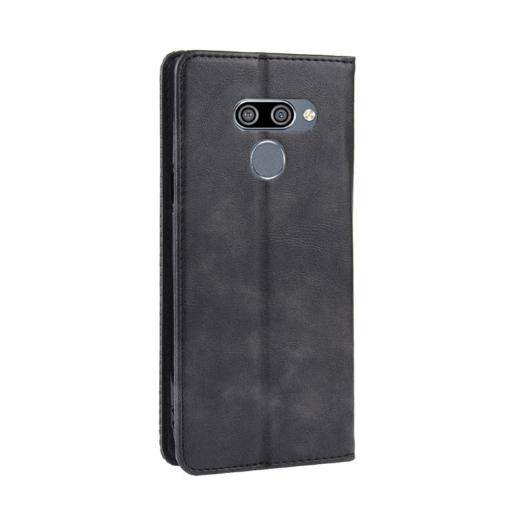Estuche de Cuero con Tapa Horizontal Textura Caballo Loco Retro con Hebilla Magnética para LG K50 y LG Q60 (Negro)