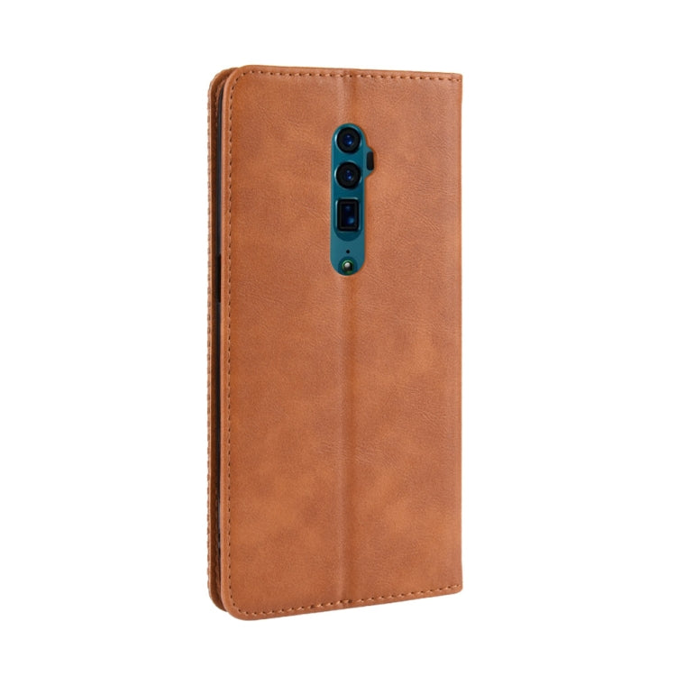 Estuche de Cuero con Tapa Horizontal con Textura de Caballo Loco Retro con Hebilla Magnética para Oppo Reno 10X Zoom / Reno 5G, con Soporte y Ranuras para Tarjetas y Marco de Fotos (Marrón)