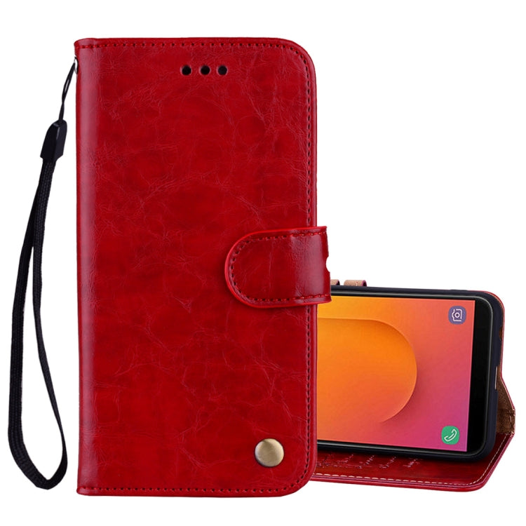 Estuche de Cuero Galaxy J8 (2018) con Tapa Horizontal, Soporte, Ranuras para Tarjetas y Billetera (Rojo)