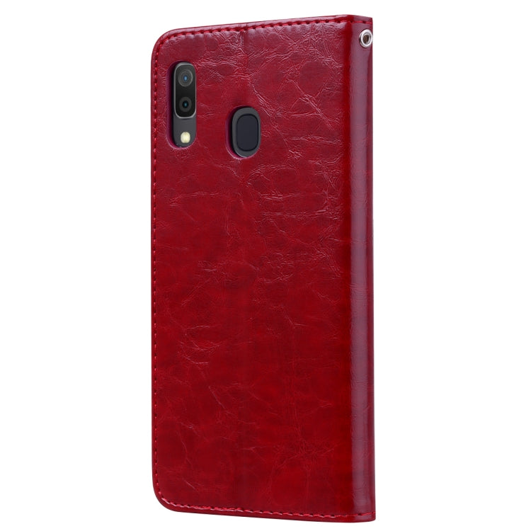 Estuche de Cuero Galaxy A30 con Tapa Horizontal Soporte Ranuras Tarjetas Billetera (Rojo)