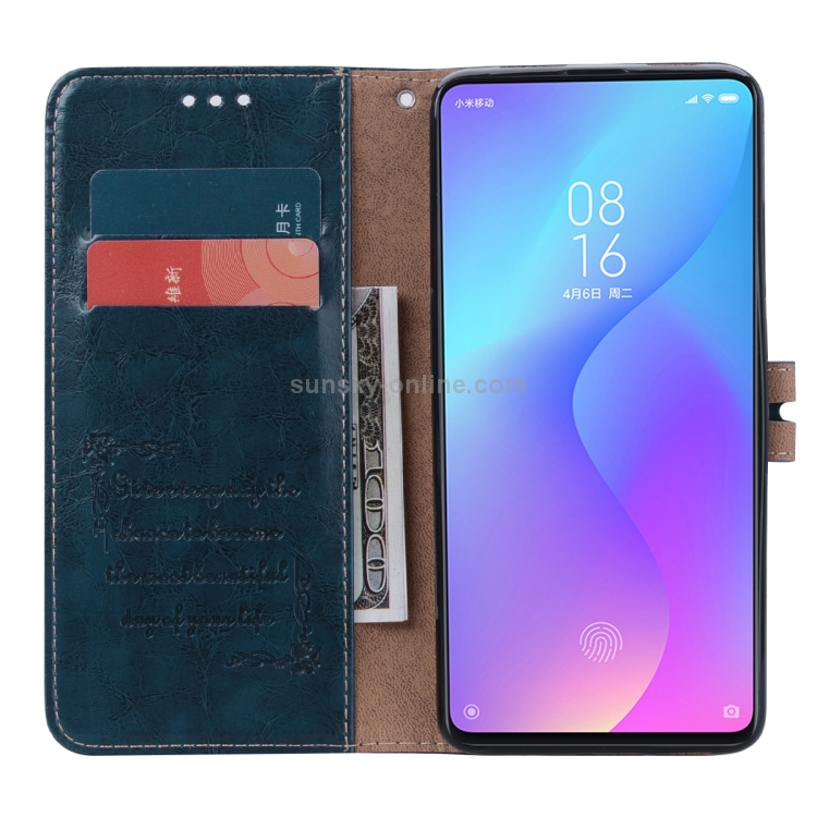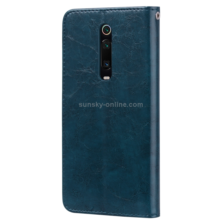 Estuche de Cuero con Tapa Horizontal con Textura de Cera de Aceite de Estilo Empresarial para Xiaomi Redmi K20 / K20 Pro, con Soporte, Ranuras para Tarjetas y Billetera (Azul)