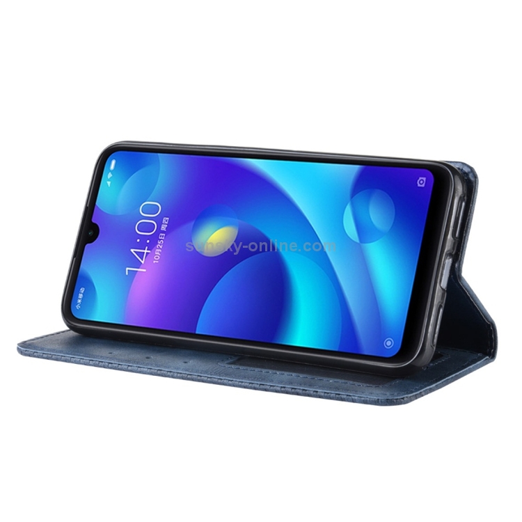 Estuche de Cuero con Tapa Horizontal con Textura Retro y Hebilla Magnética para Xiaomi Mi Play, con Soporte, Ranuras para Tarjetas y Billetera (Azul)