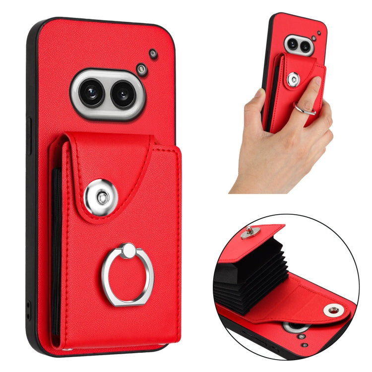 Estuche para Teléfono For Nothing Phone 2A con Anillo y Tarjetero (Rojo)