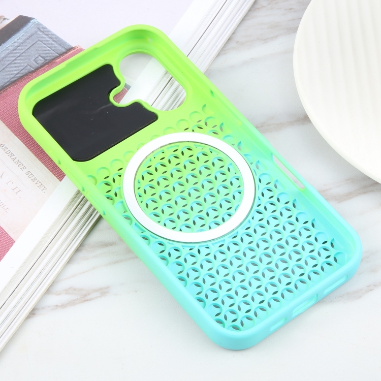 Estuche para Teléfono Aromaterapia iPhone 16 Plus Magsafe Forma Panal (Verde Azul)