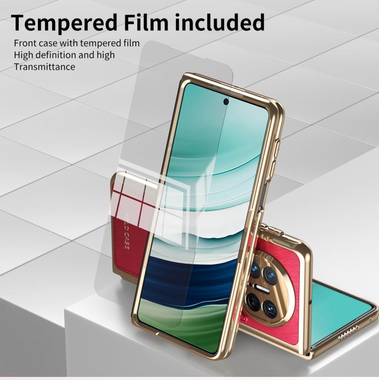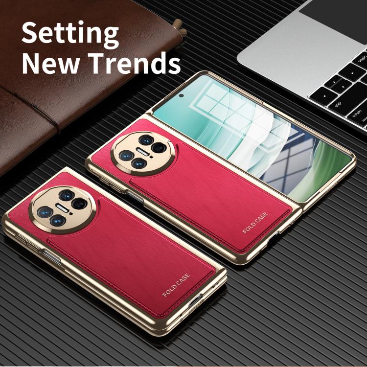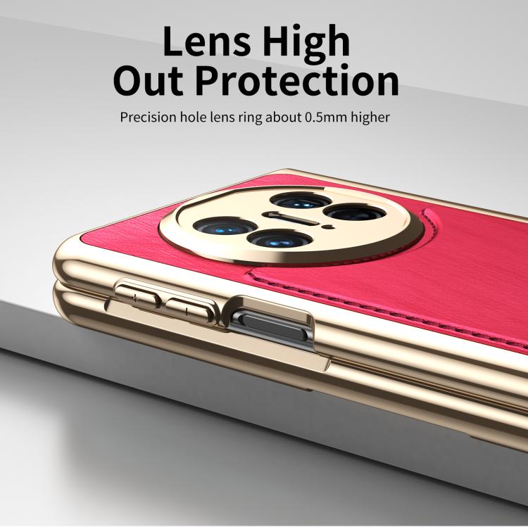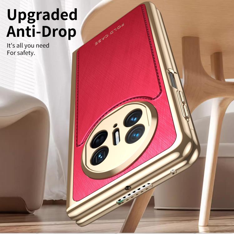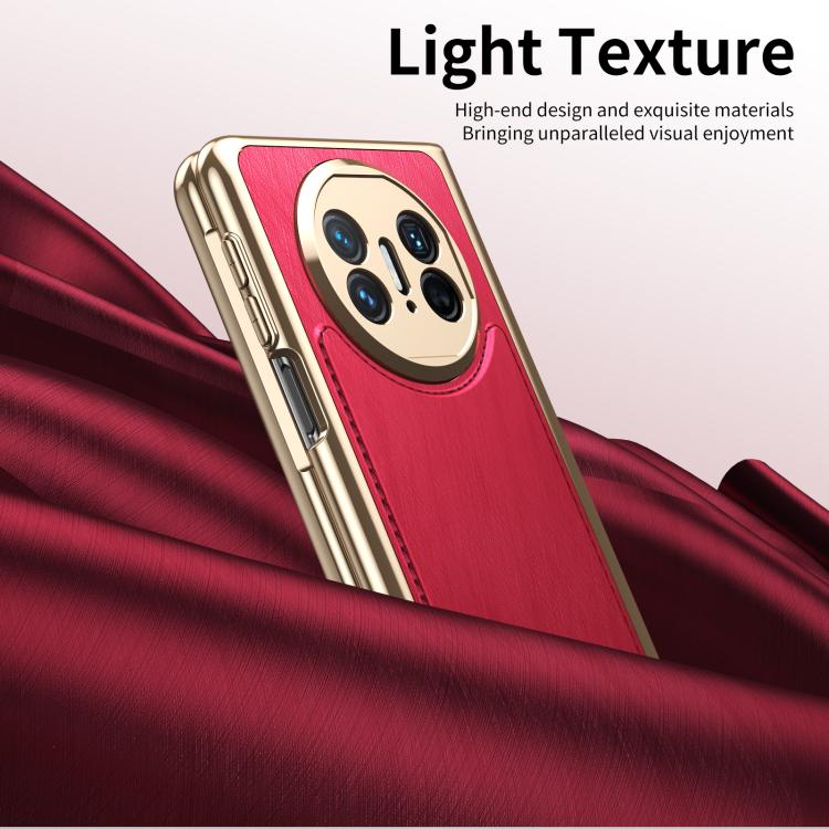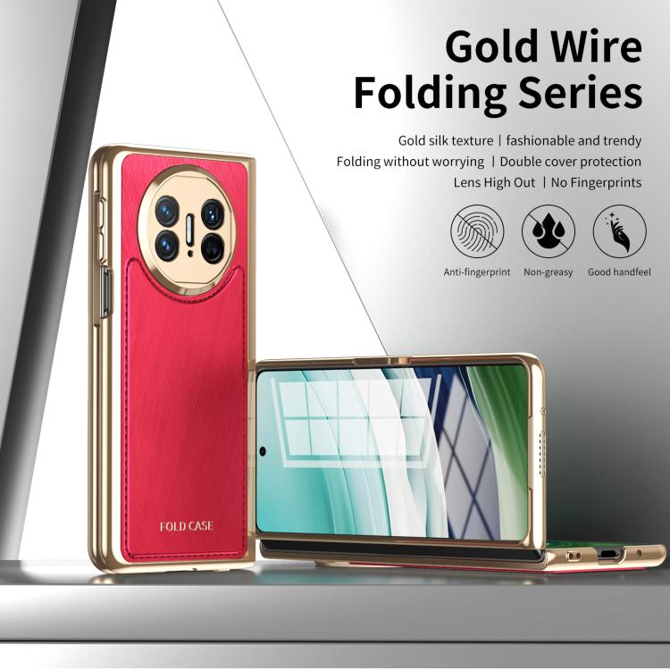 Estuche para Teléfono Huawei Mate X3 con Baño de Brocado Plateado y Alambre Dorado Integrado (Rojo)