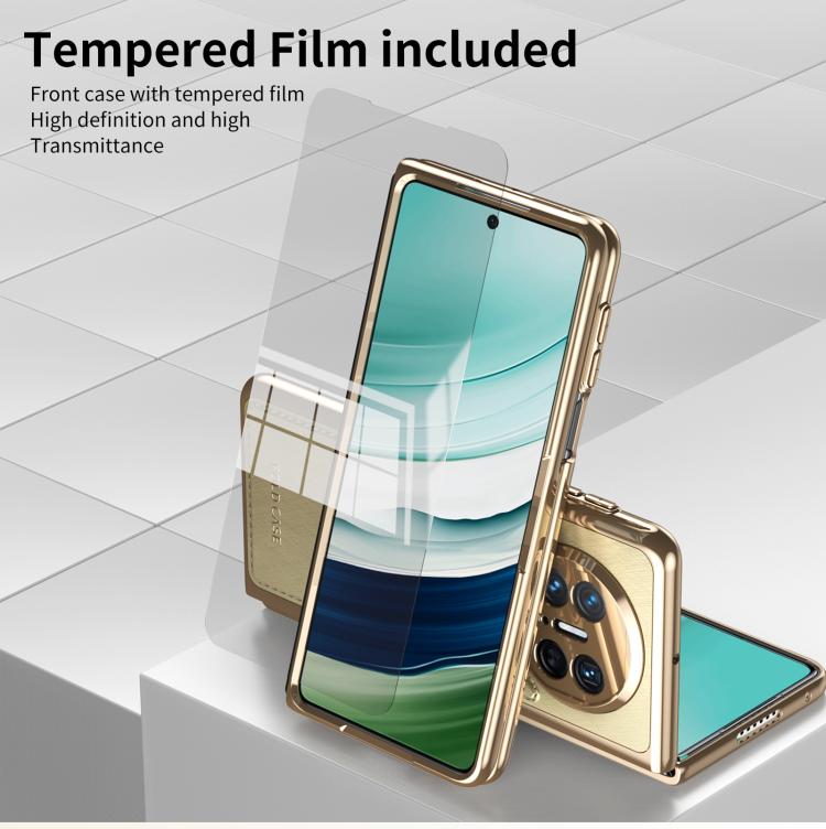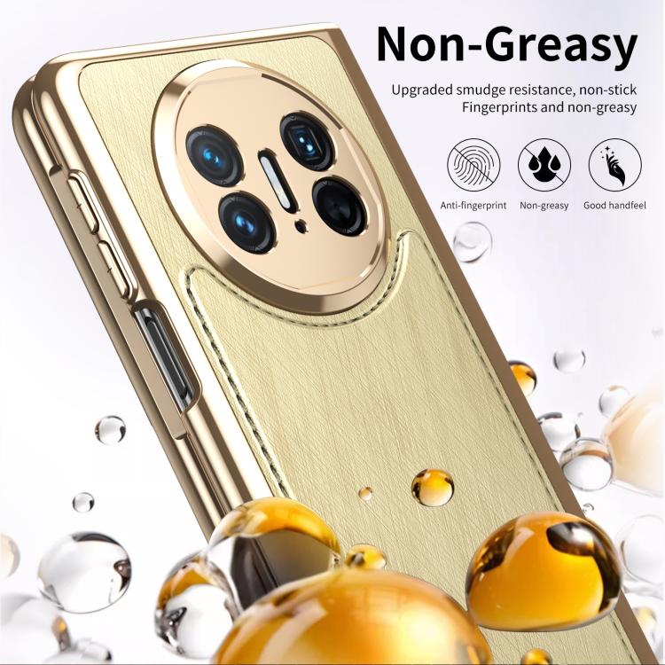 Estuche para Teléfono Huawei Mate X5 con Baño de Brocado Plateado y Alambre Dorado Integrado (Dorado)