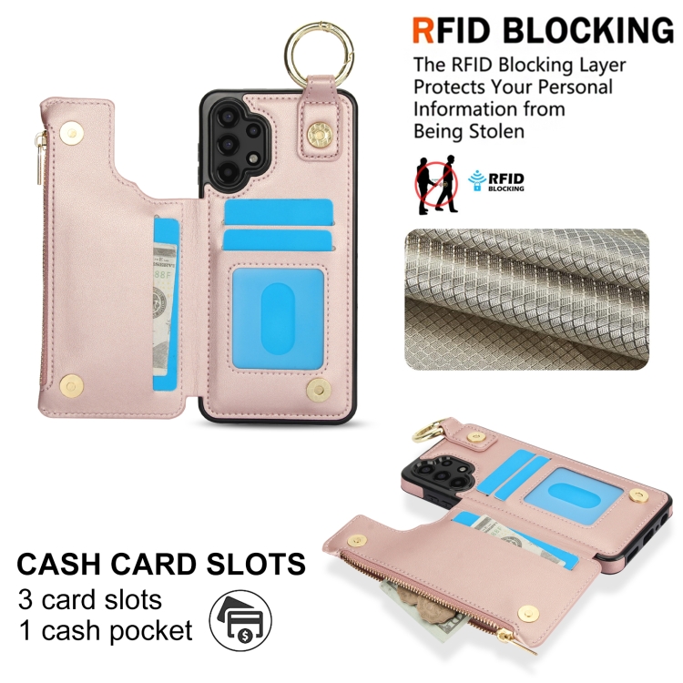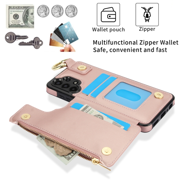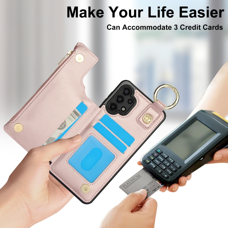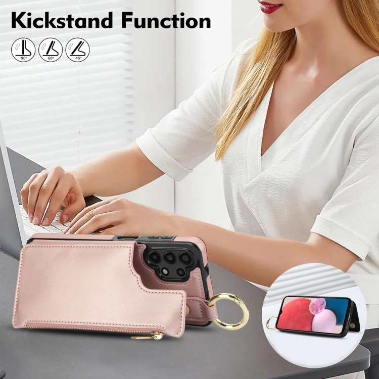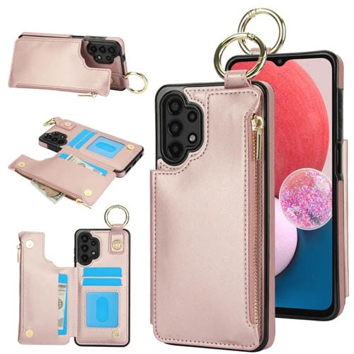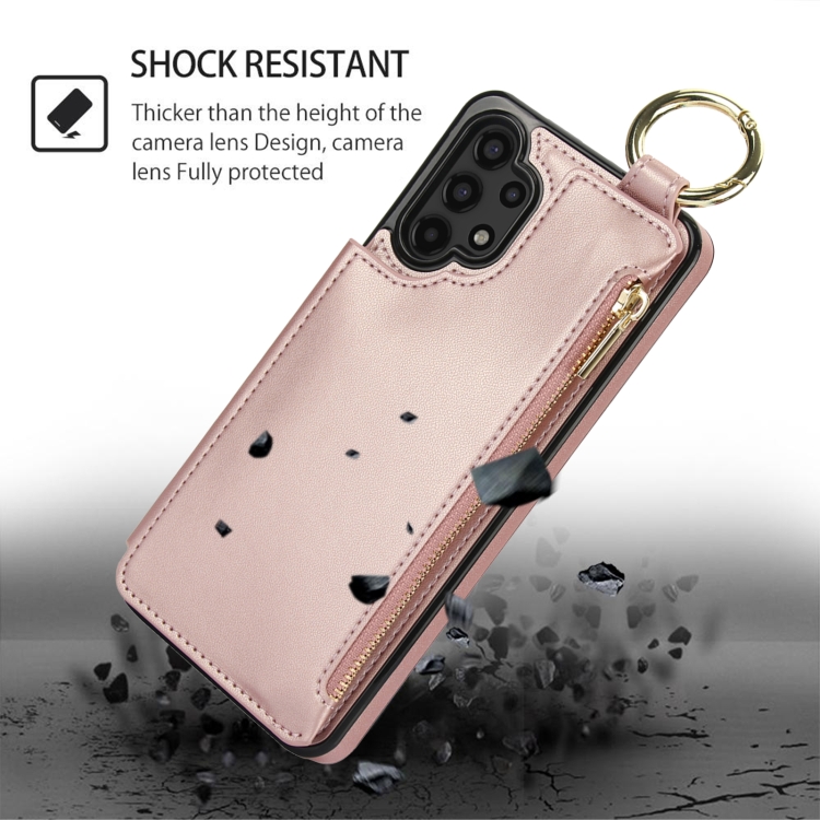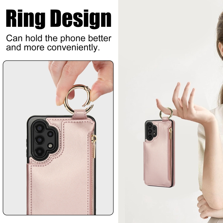 Estuche para Teléfono Samsung Galaxy A13 4G/5G con Cremallera y Anillo Doble Hebilla Antirrobo (Oro Rosa)