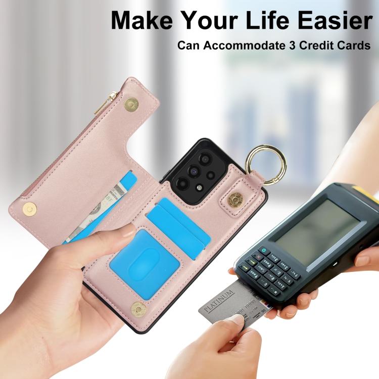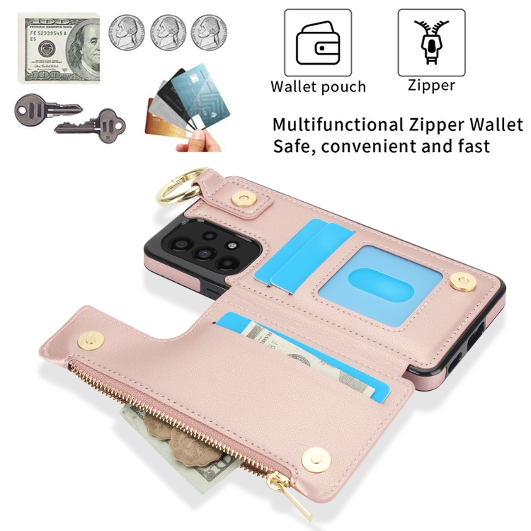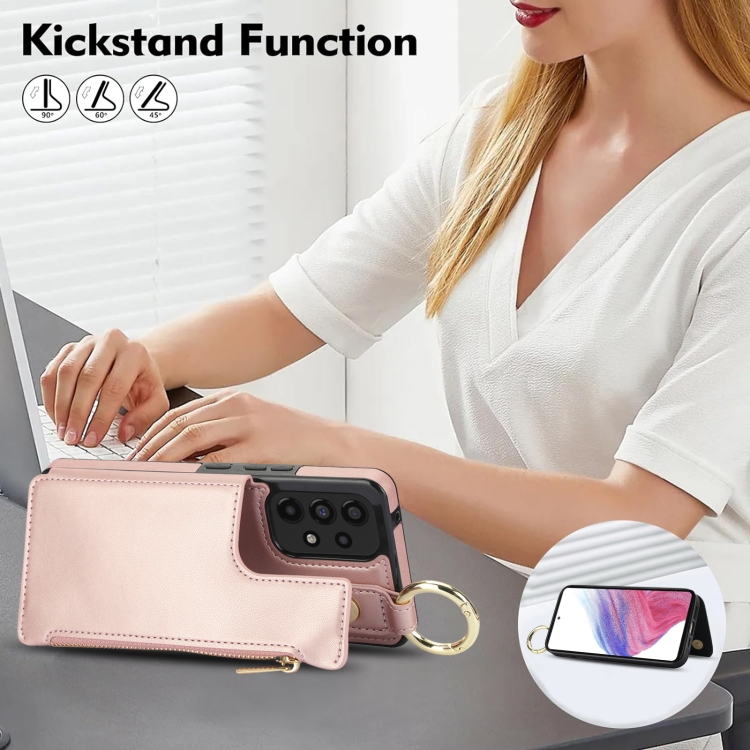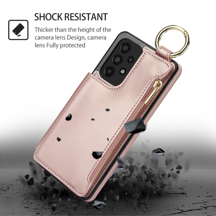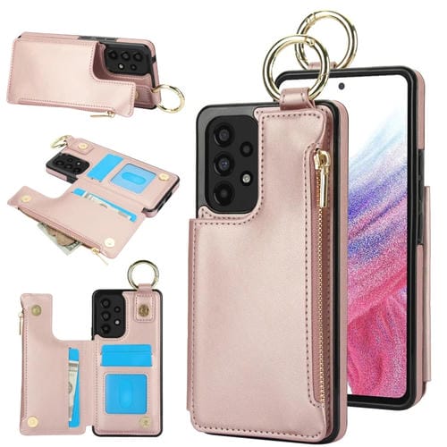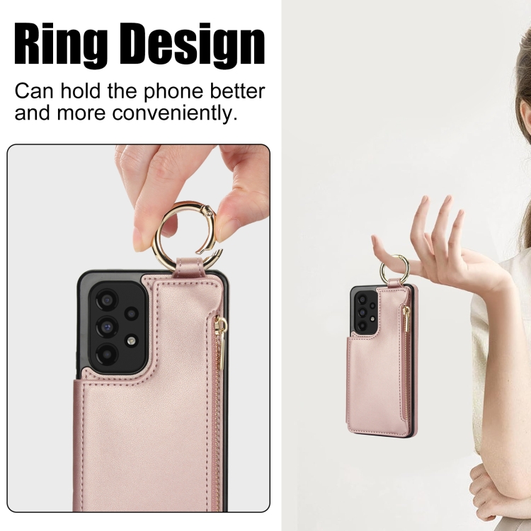 Estuche para Teléfono Samsung Galaxy A53 4G/5G Rfld con Cremallera y Anillo de Doble Hebilla Antirrobo (Oro Rosa)