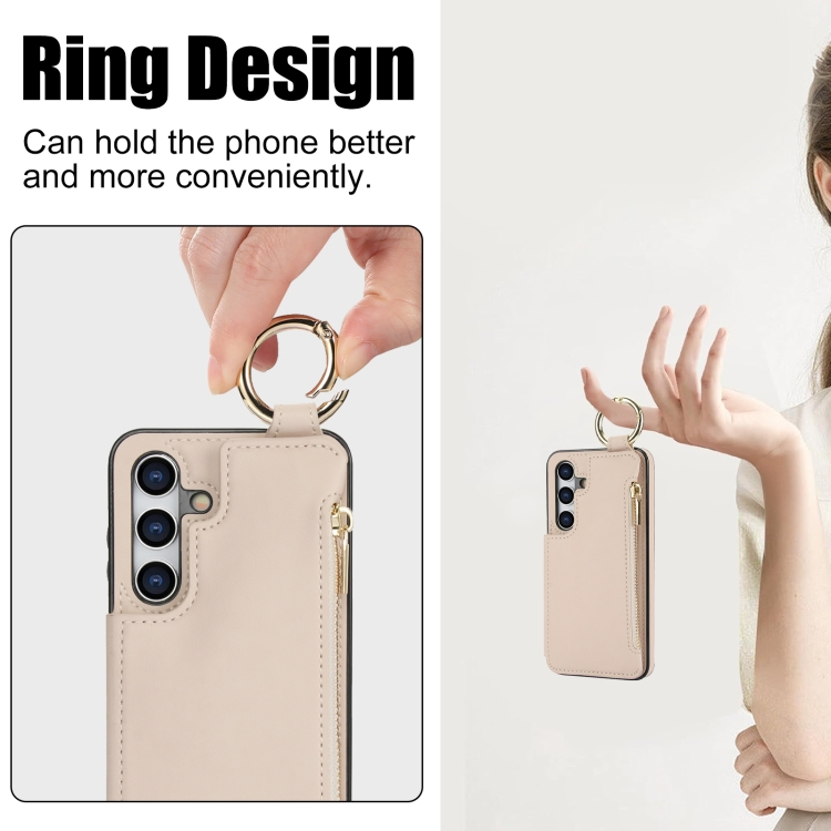 Estuche para Teléfono Samsung Galaxy A55 5G Rfld con Cremallera y Anillo Doble Hebilla Antirrobo (Blanco)