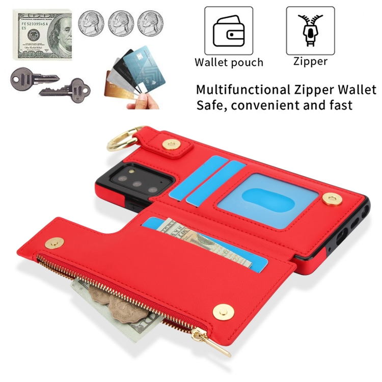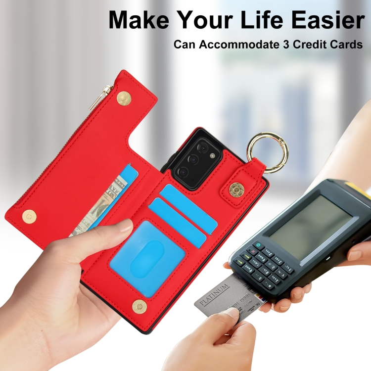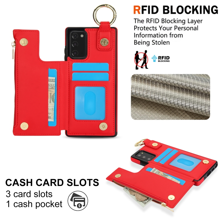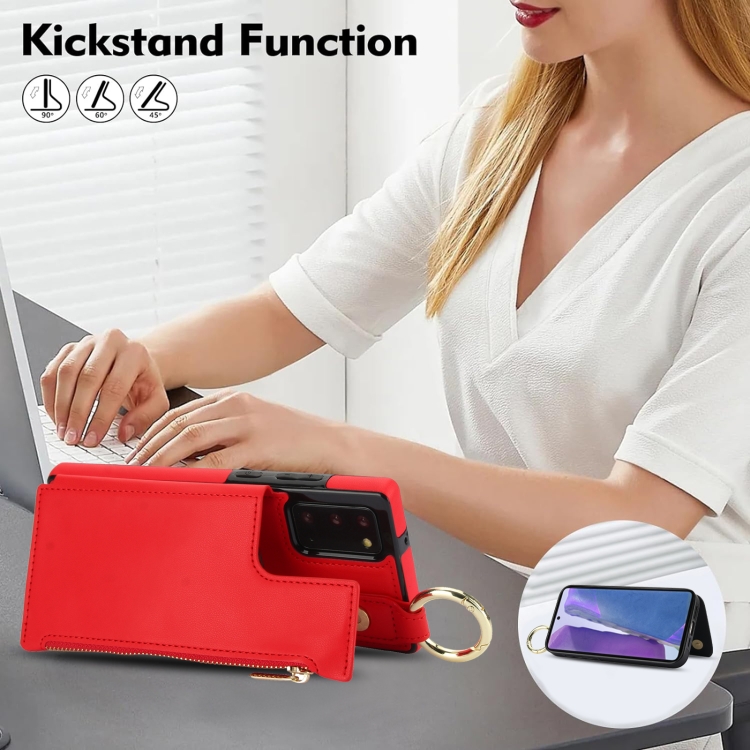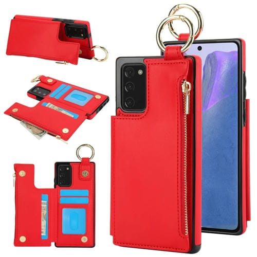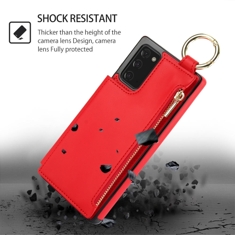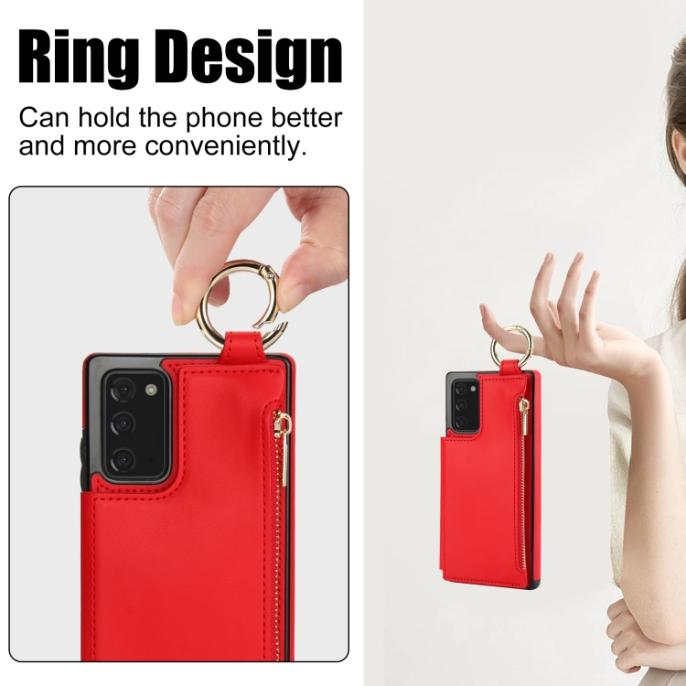 Estuche para Teléfono Samsung Galaxy Note20 Rfld con Cremallera y Anillo de Doble Hebilla Antirrobo (Rojo)