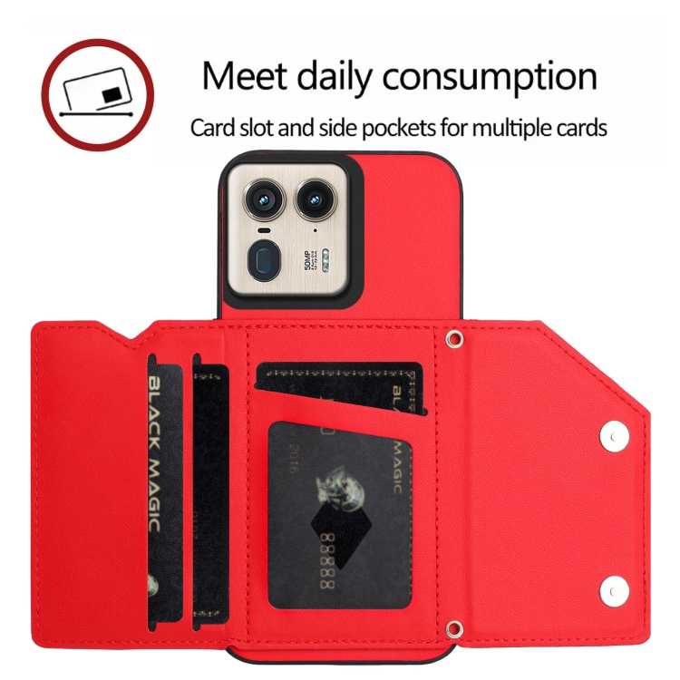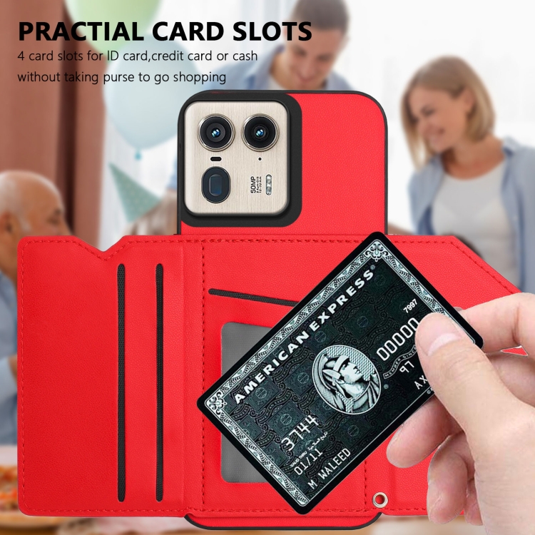 Estuche para Motorola Moto X50 Ultra Skin Feel con 4 Ranuras para Tarjetas y Correa (Rojo)