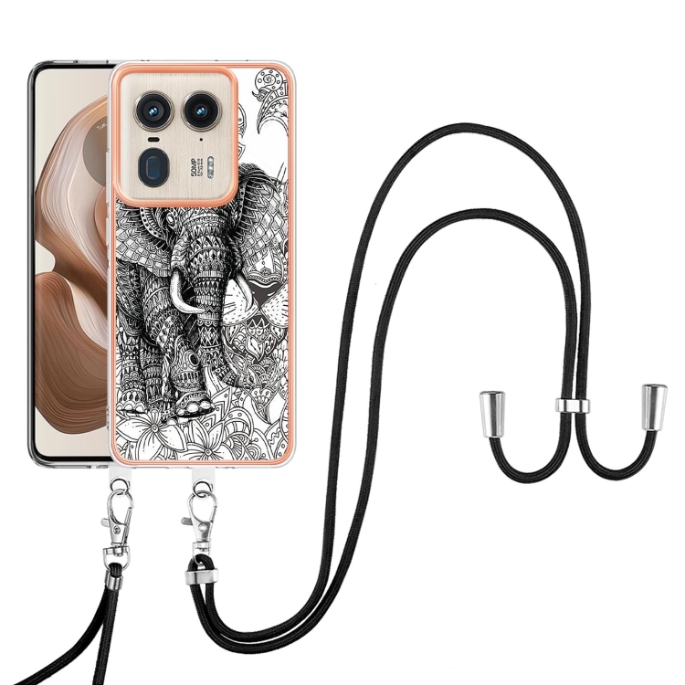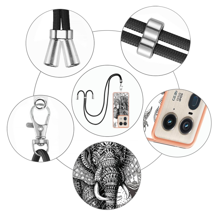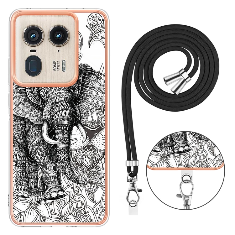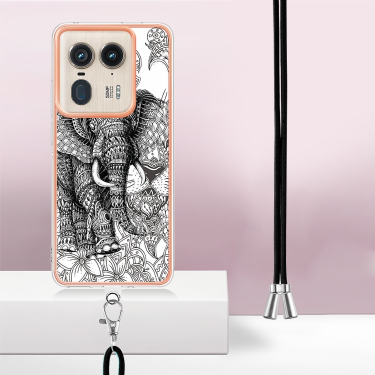 Estuche para Teléfono Motorola Edge 50 Ultra con IMD Doble Cara Galvanizada y Cordón (Elefante Tótem)