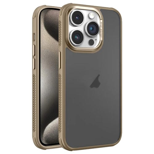 Estuche para Teléfono iPhone 15 Pro Max Marco de Lente Metal Esmerilado Sensación Piel Enfriamiento Lateral (Dorado)