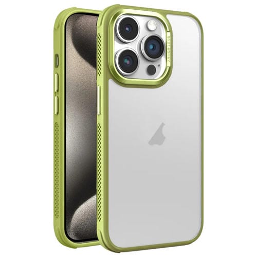 Estuche para Teléfono iPhone 15 Pro Max Marco de Lente Metal Esmerilado Sensación de Piel Enfriamiento Lateral (Verde)