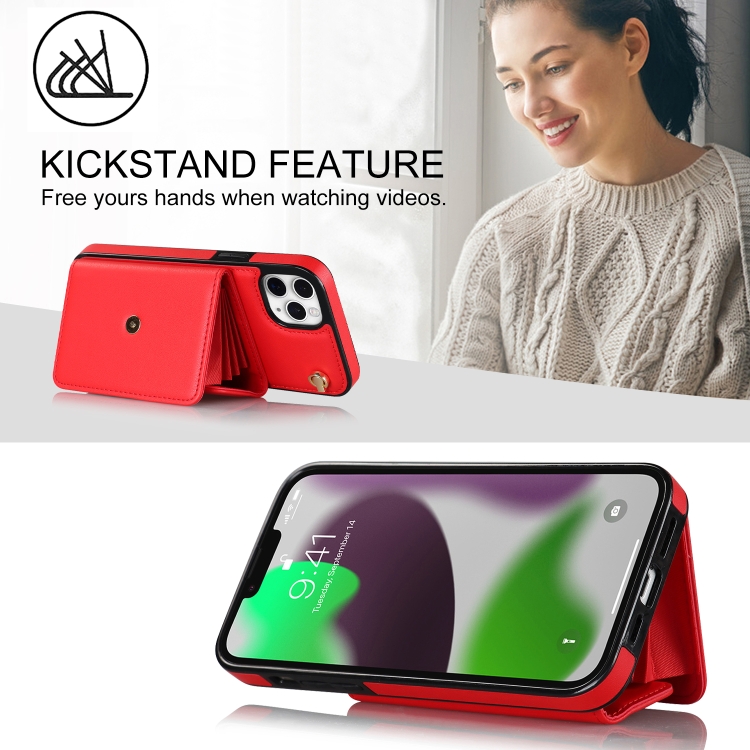 Estuche para Teléfono iPhone 11 Pro Max Ranura Tarjeta Rfid Cordón Largo (Rojo)