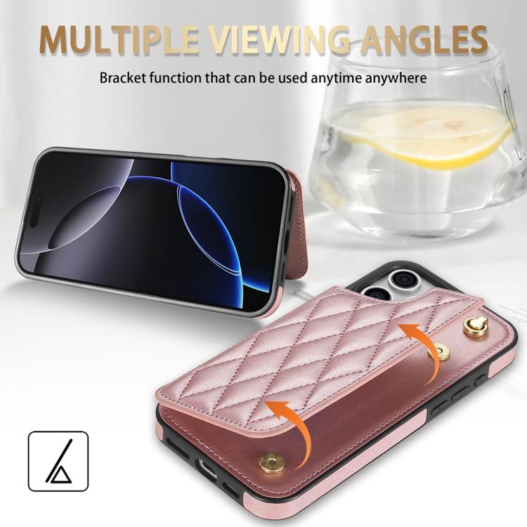 Estuche para Teléfono iPhone 11 Pro Max Ranuras para Tarjetas Hebilla Doble Cordón (Oro Rosa)