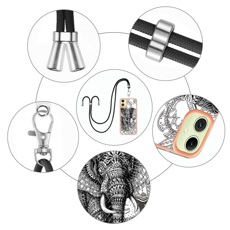 Estuche para Teléfono Samsung Galaxy A06 4G con Imd Doble Cara y Galvanoplastia con Cordón (Elefante Tótem)