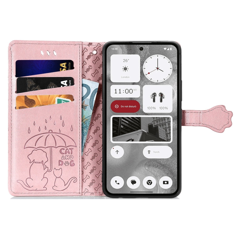 Estuche para Nothing Phone 2 de Cuero En Relieve con Diseño de Gato y Perro (Oro Rosa)