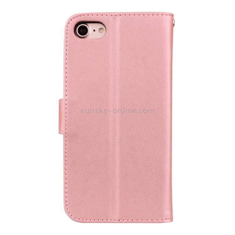 Funda de Cuero Fro para iPhone 8 y 7 con Diseño de Flores Prensadas, Soporte, Ranuras para Tarjetas y Billetera (Oro Rosa)