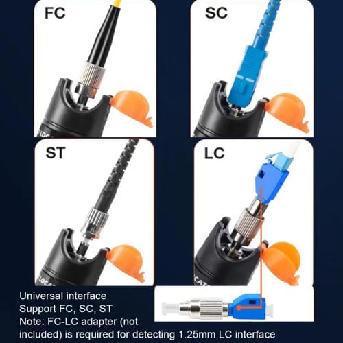 Es compatible con los Conectores estándar FC, SC y ST mediante su interfaz Universal de 2,5 mm. -