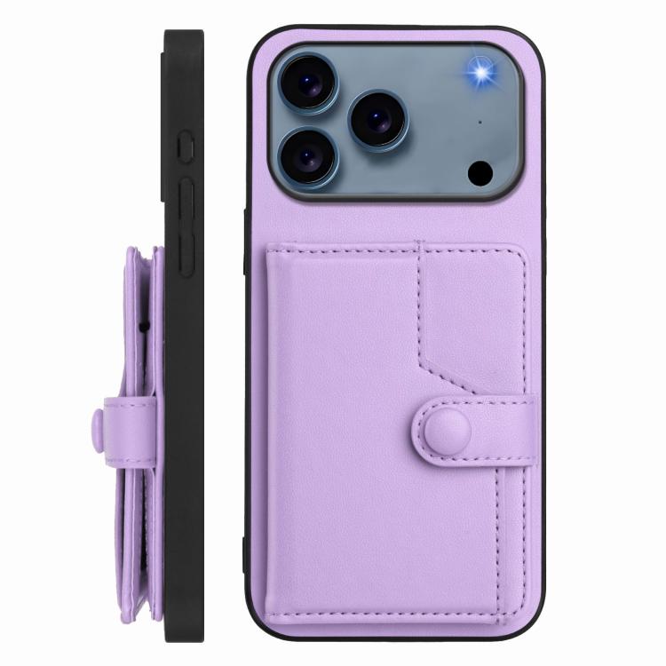 Funda antirrobo RFID con botón y tarjetero para iPhone 17 Pro (morada)