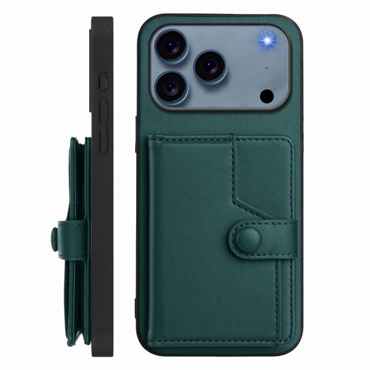 Funda antirrobo RFID con botón y tarjetero para iPhone 17 Pro (verde)