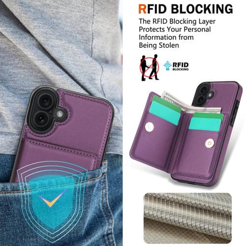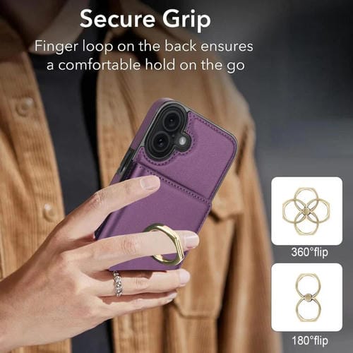 Funda antirrobo RFID para iPhone 17 con anillo para tarjetas (morado oscuro)