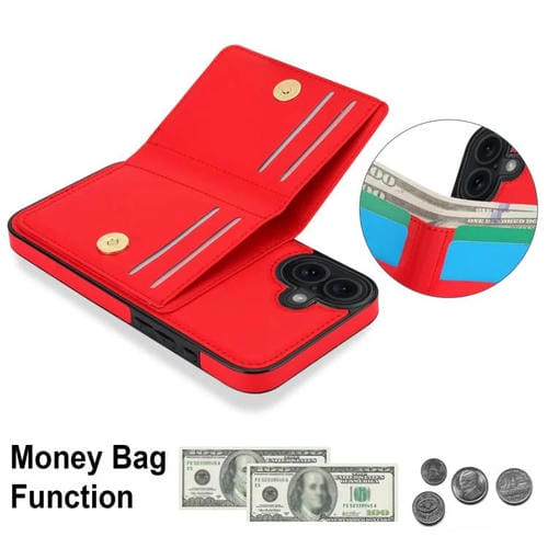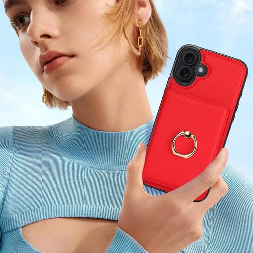 Funda antirrobo RFID para iPhone 17 con anillo para tarjetas (roja)