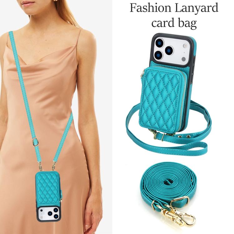 Funda AwQuer con cierre cruzado y parte trasera de cuero con diseño rómbico para iPhone 17 Pro (verde)
