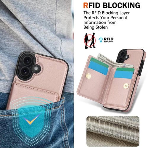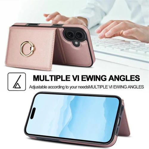 Funda con anillo para tarjeta antirrobo RFID para iPhone 17 (oro rosa)