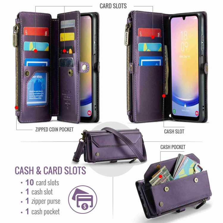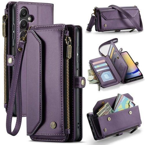 Funda Cuero Antirrobo Caseme C36 para Samsung Galaxy A25 con Ranuras y Cremallera (Morado)