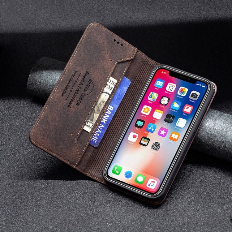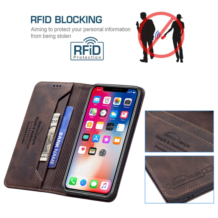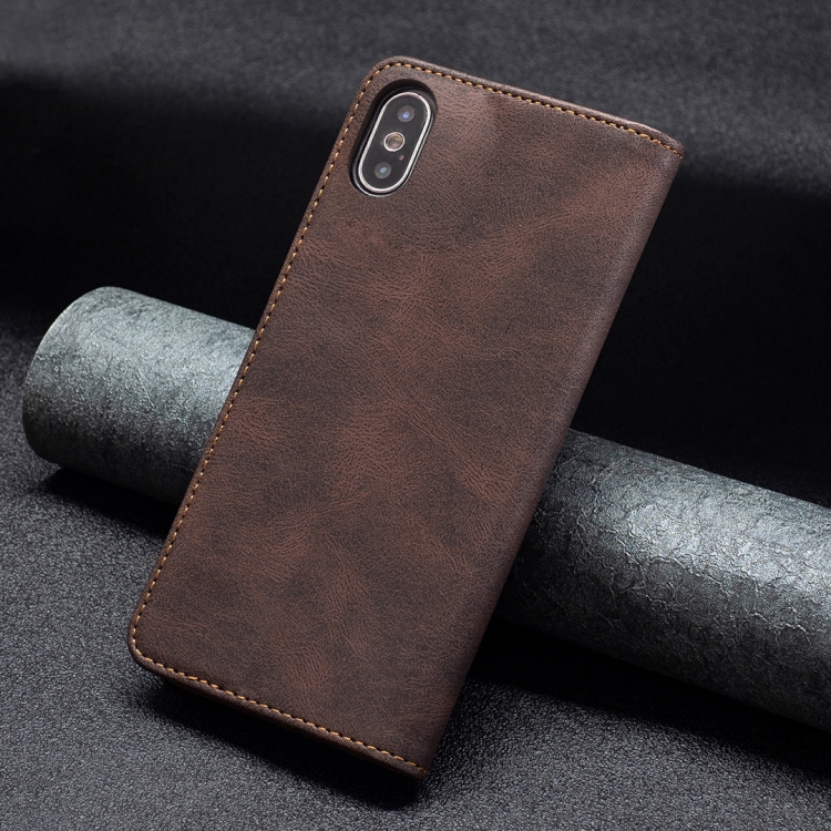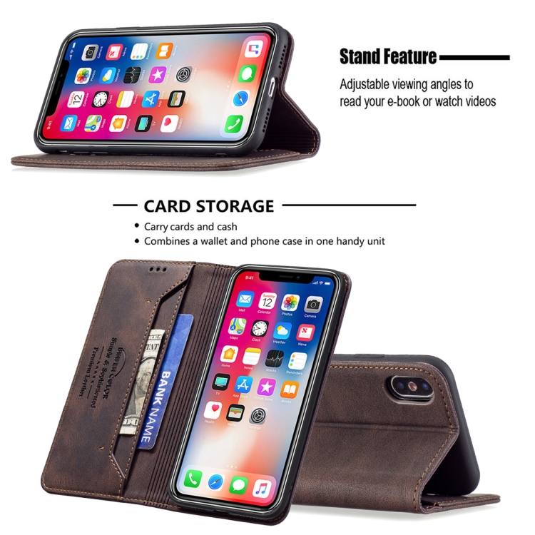 Funda de Cuero Antirrobo Bloqueo Rfid Magnético con Soporte para iPhone X / Xs (Brown)
