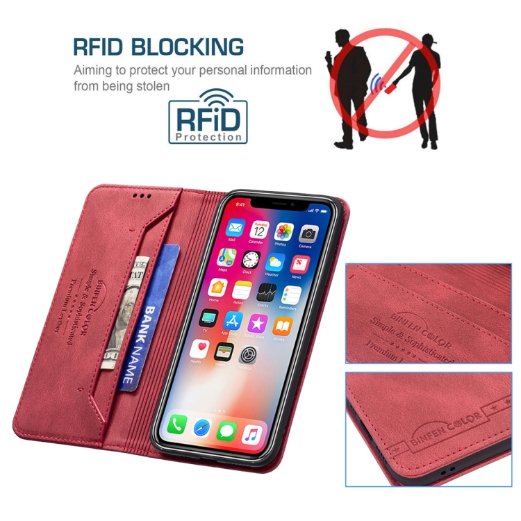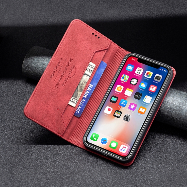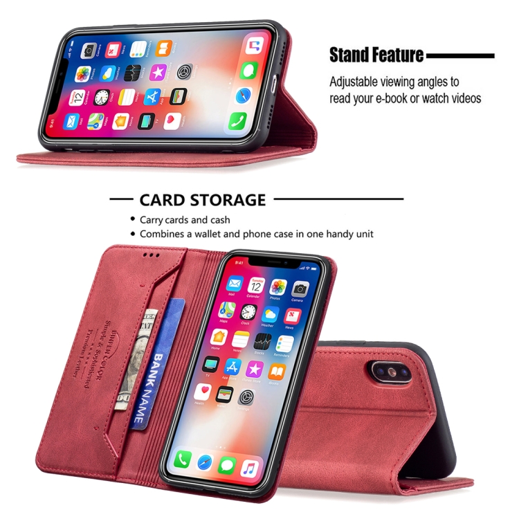 Funda de Cuero Antirrobo Bloqueo Rfid Magnético con Soporte y Billetera para iPhone X / Xs (Rojo)