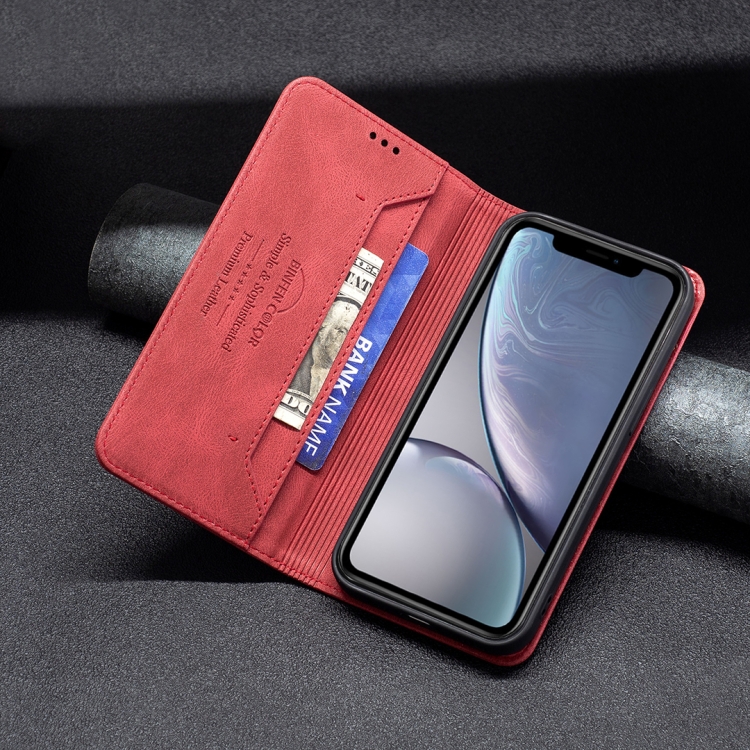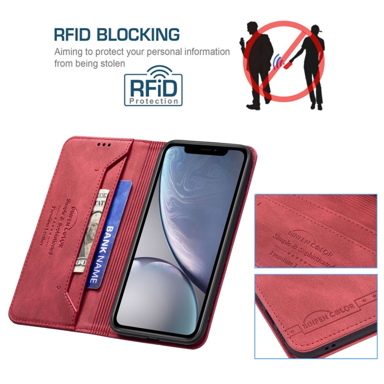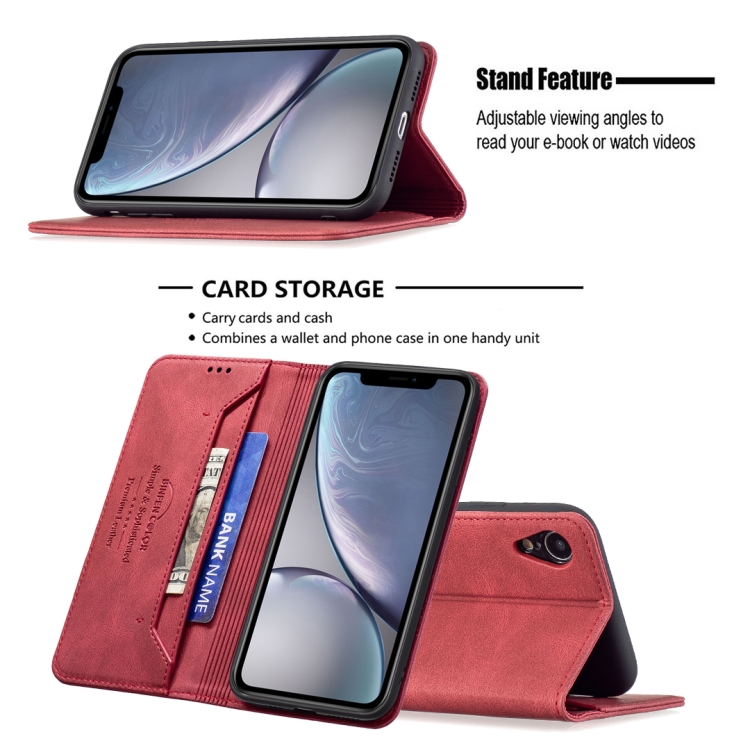 Funda Cuero Antirrobo Bloqueo RFID Magnético Soporte Tragamonedas Billetera iPhone Xr (Rojo)