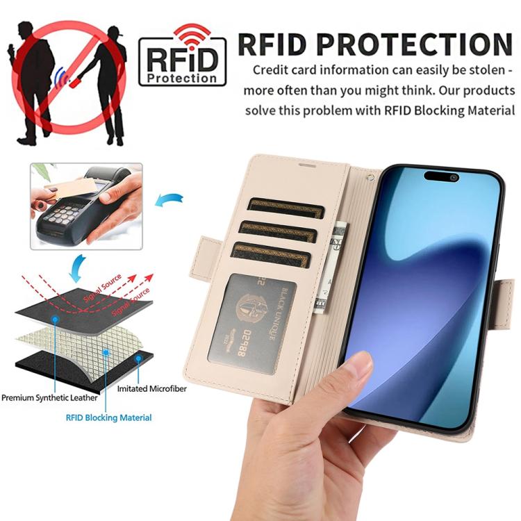 7. Función de bloqueo RFID: Diseñado con tecnología de bloqueo RFID que puede bloquear las señales RFID y proteger la información personal de escáneres no autorizados.