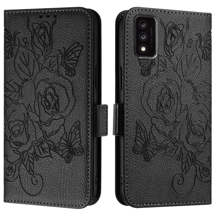 Funda de Cuero Antirrobo RFID con Relieve para TCL 30T T603Dl (Negra)