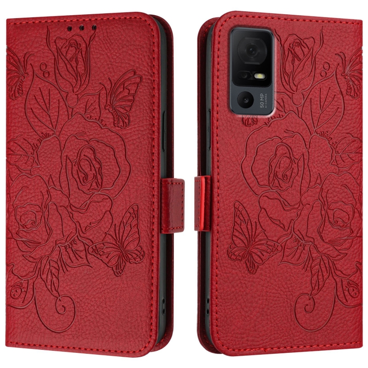 Funda de Cuero Antirrobo RFID con Relieve para TCL 40 XL/40 T T608DL (Rojo)