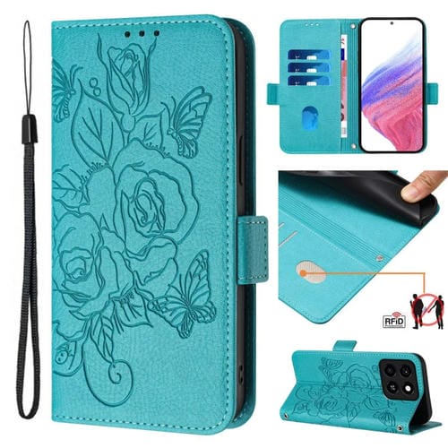 Funda de Cuero Antirrobo RFID con Relieve para ZTE Blade A35/A55 (Azul Claro)