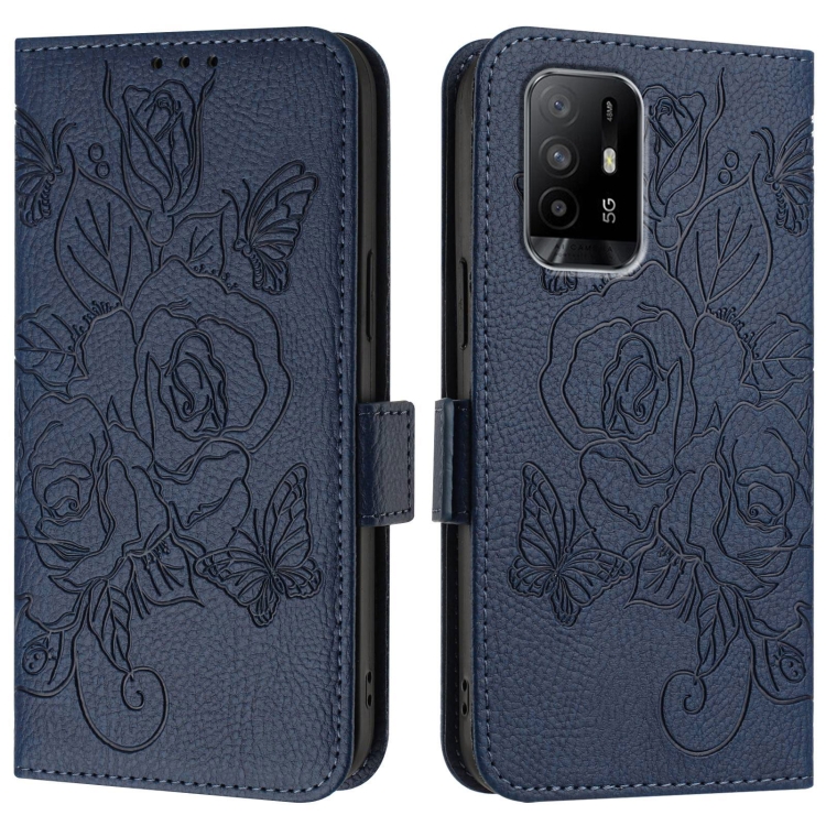 Funda de Cuero Antirrobo Rfid con Relieve Rosa para Oppo Reno6 Lite (Azul Oscuro)