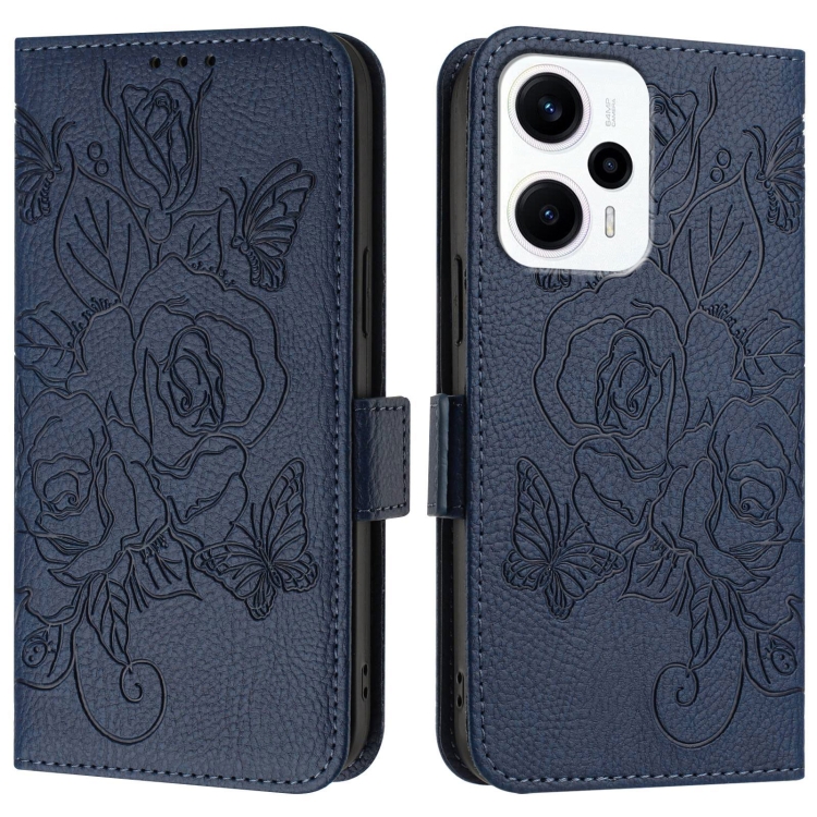 Funda de Cuero Antirrobo Rfid con Relieve Rosa para Redmi Note 11T Pro+ / Note 12T Pro / K50I (Azul Oscuro)