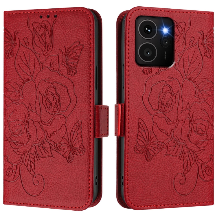 Funda de Cuero Antirrobo RFID para Teléfono HMD Skyline con Relieve (Rojo)