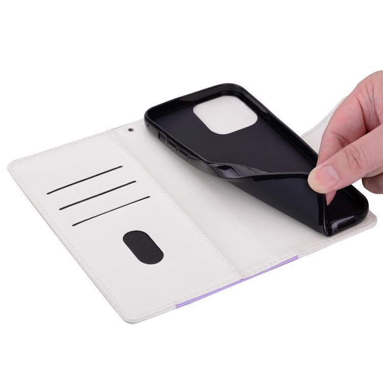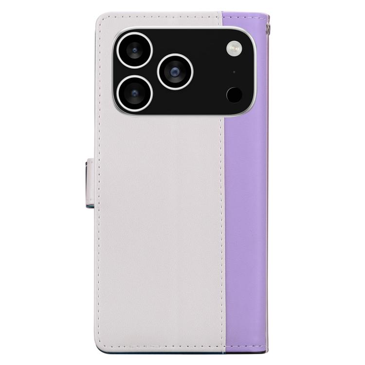 Funda de cuero bicolor con relieve para iPhone 17 Pro (morado y blanco)