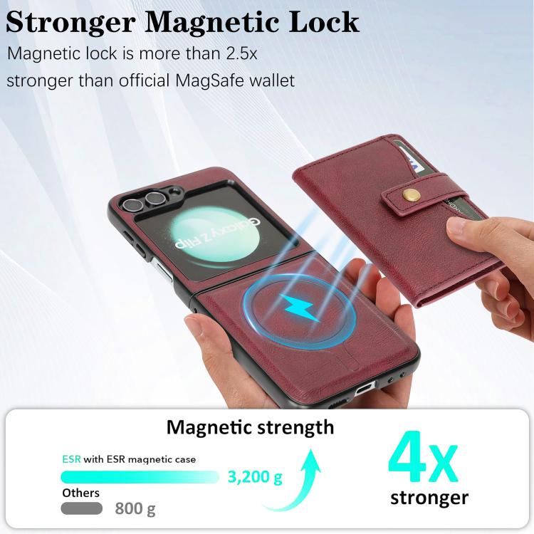 Funda de cuero con anillo MagSafe para Samsung Galaxy Z Flip6 (rojo)