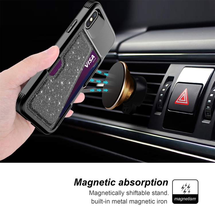 Funda de Cuero con Bolsa de Tarjeta Magnética con Brillo para iPhone X / Xs (Negro)
