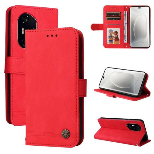Funda de Cuero Honor 300 Pro con Botones de Metal y Diseño Árbol de la Vida (Rojo)