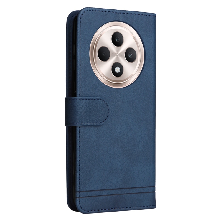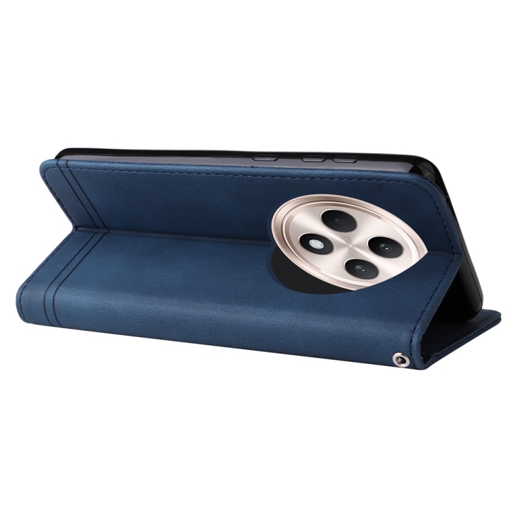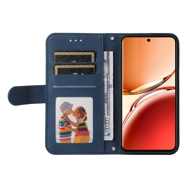 Funda de Cuero con Botones de Metal y Diseño de Árbol de la Vida para Oppo Reno12 F 5G Global Skin Feel (Azul)