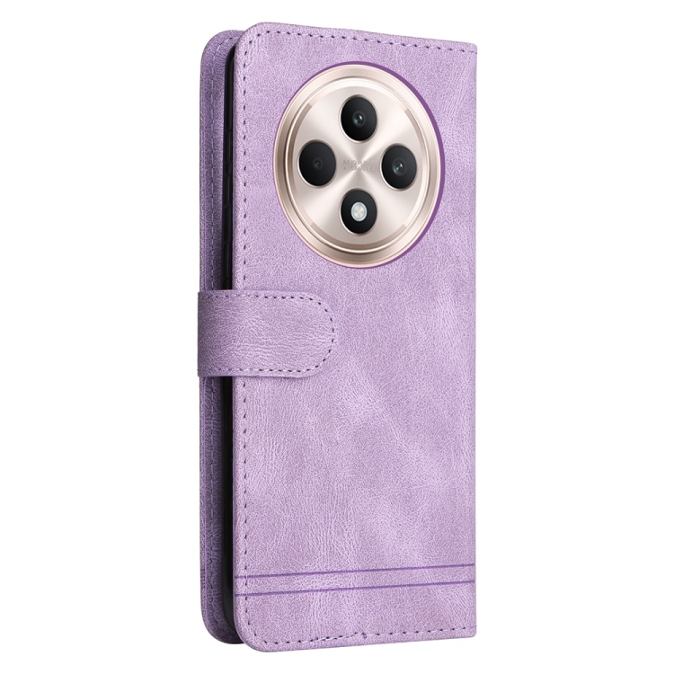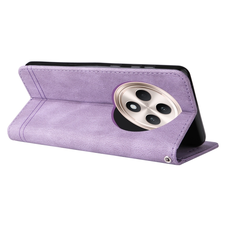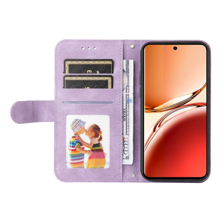 Funda de Cuero con Botones de Metal y Diseño de Árbol de la Vida para Oppo Reno12 F 5G Global Skin Feel (Morado)